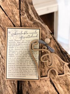 Celebrate the special bond of friendship that feels like family with our Unbreakable Circle of Sisterhood Elephant Storycard Ornament. Featuring a delicately laser-cut wooden elephant with a heart detail, tied with rustic twine and a charming gingham ribbon, this piece is a sweet symbol of loyalty, love, and lifelong connection