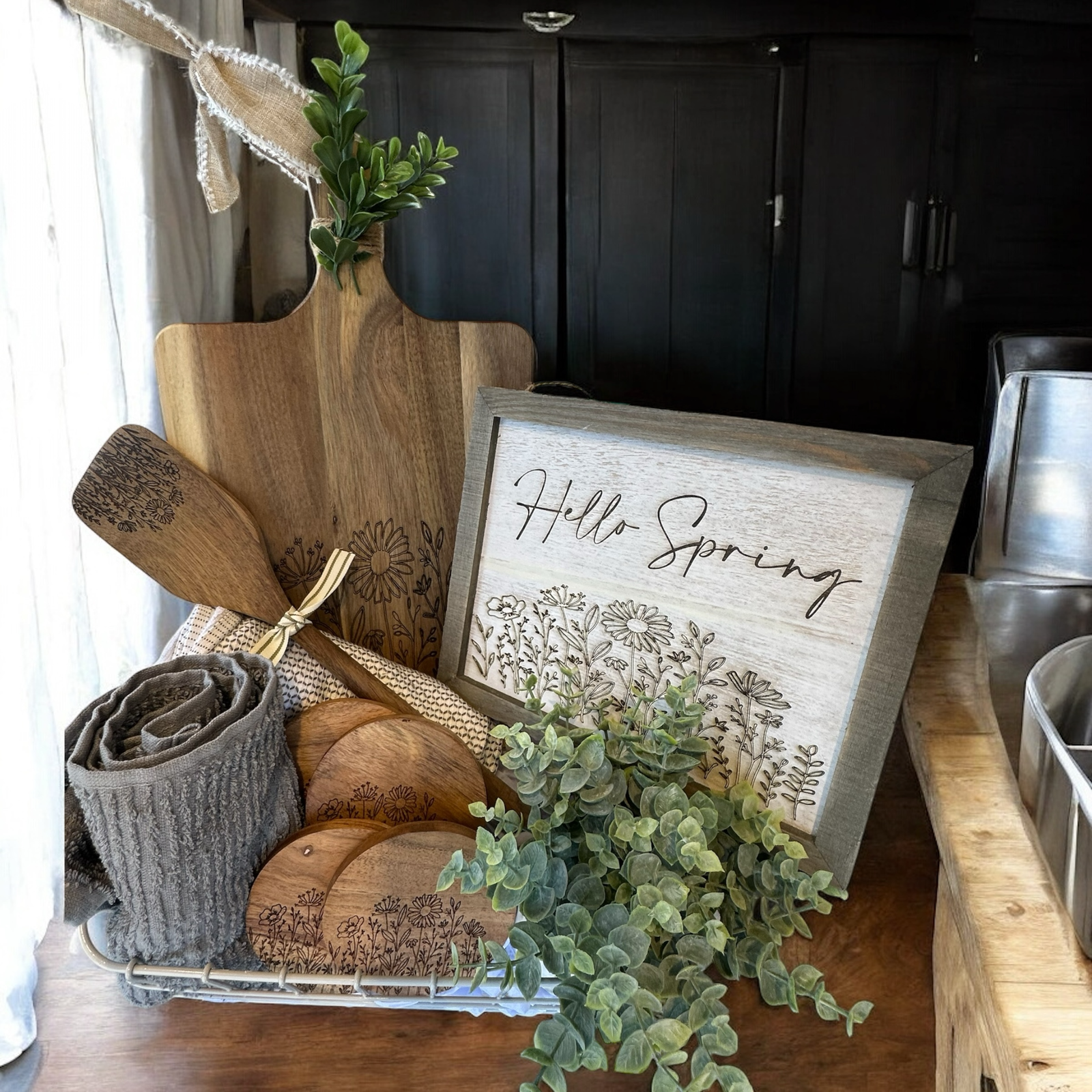 🌾 Rustic farmhouse-style “Hello Spring” sign