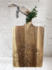 🌾 Engraved cutting board with a floral design